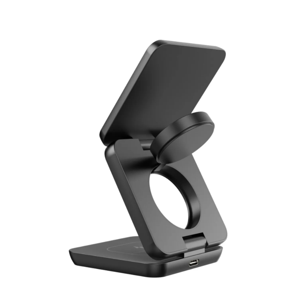 Carga todos tus dispositivos al mismo tiempo con el Cargador Inalámbrico 3 en 1 Qi2. Su estructura en aleación de aluminio garantiza resistencia y mejor disipación térmica, mientras que la plataforma magnética Qi2 de 15W ofrece un acople inmediato y eficiente para iPhone y Android con Qi. Además, incluye base de 5W para AirPods y soporte para Apple Watch. Su diseño plegable y ajustable lo hace ideal para escritorio, viajes o mesita de noche. Con protecciones de seguridad integrales e indicador LED de estado, es la solución práctica y elegante para tu día a día.