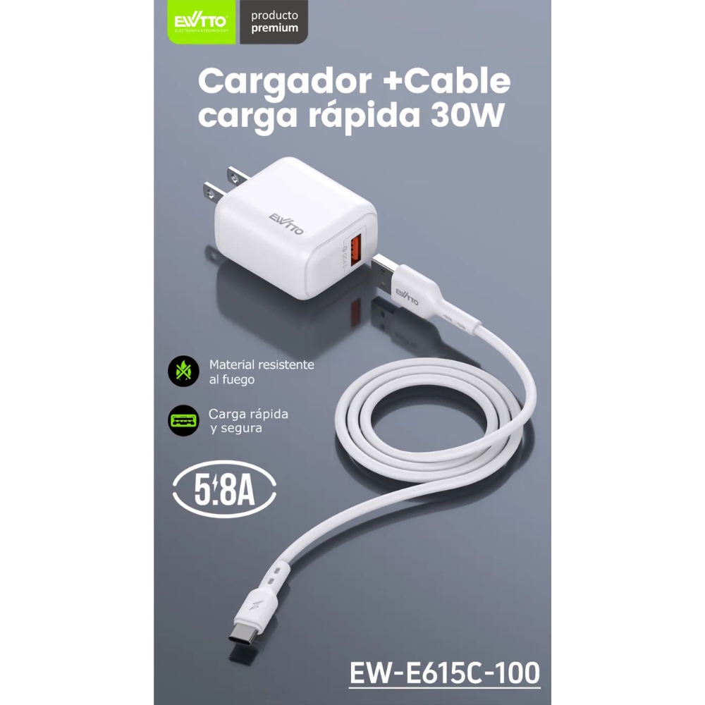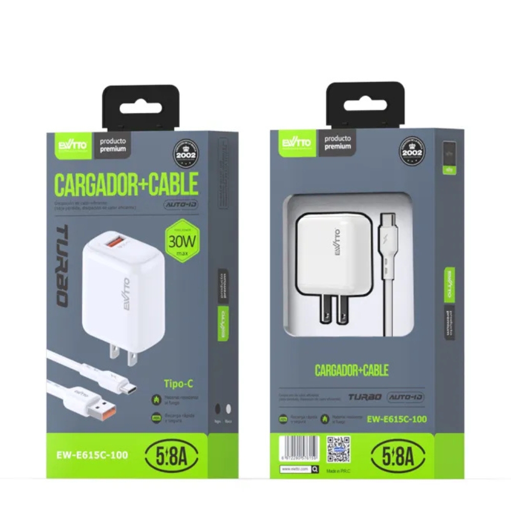 Cargador Ewtto 30W y Cable Tipo C E615C