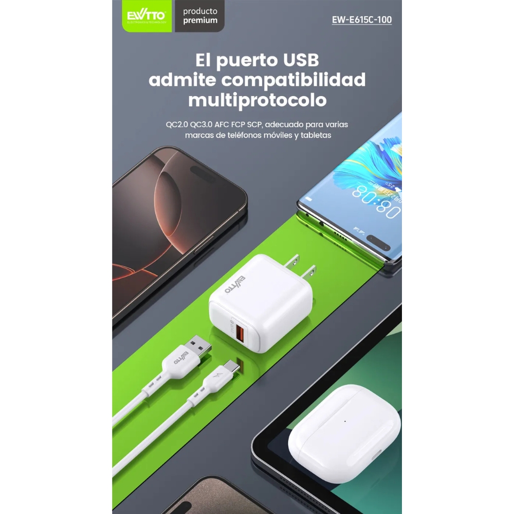 Lleva tu carga al siguiente nivel con el cargador Ewtto Turbo 30W. Equipado con tecnología Auto-ID, detecta automáticamente tu dispositivo para ofrecer una carga rápida, segura y eficiente. Su potente salida de hasta 5.8A garantiza una recarga ultrarrápida en smartphones, tablets y más. Además, incluye un cable USB-A a Tipo-C reforzado para máxima durabilidad y compatibilidad total. Su diseño compacto y elegante lo convierte en el aliado perfecto para casa, oficina o viajes. ¡Potencia inteligente en la palma de tu mano!